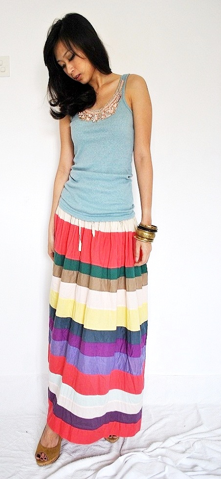 | Skip the Necklace and Accessorize with Bangles and a straw hat! |