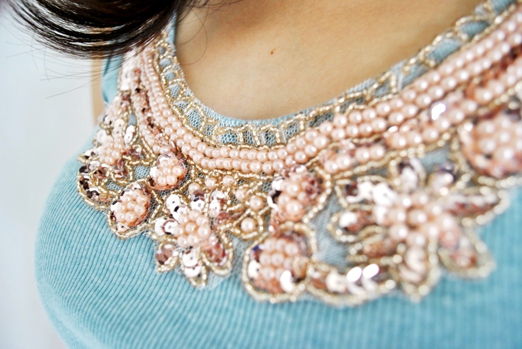 Details: Trimmed with vintage-inspired beading and sequin embellishment at the neck, finished with raw-edge detailing. |